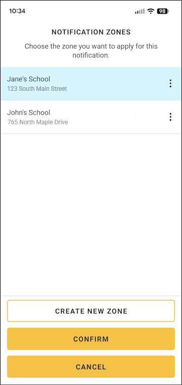 - If you want to switch to a different zone you previously added, select it, tap Confirm, and skip down to step 7.